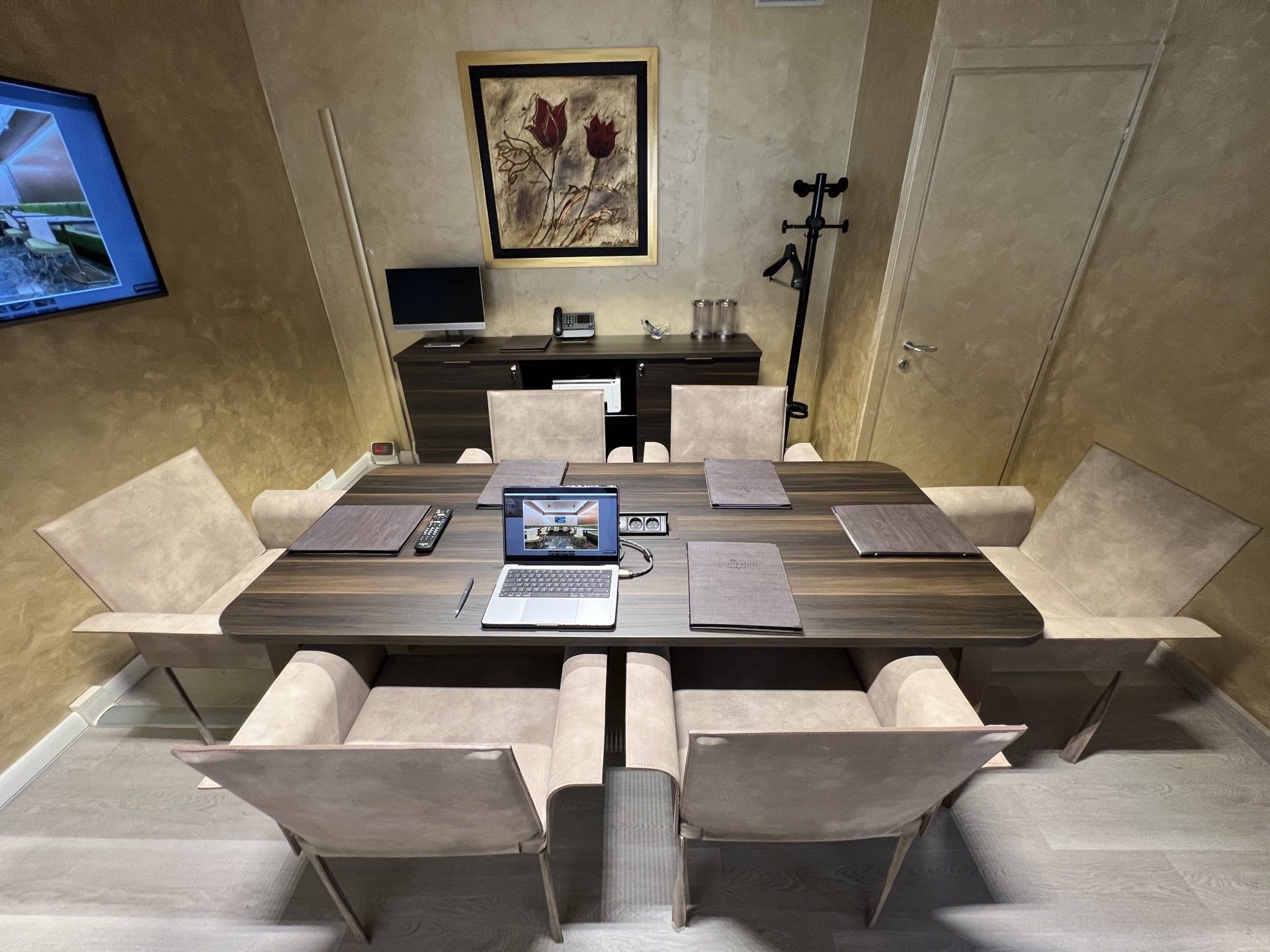 It seats up to 8 people comfortably and comes with all the modern equipment necessary. The hotel offers coffee break, buffet, and catering service to ensure a successful company meeting, a presentation of a new product or line, a news conference, etc., right in the heart of the city.